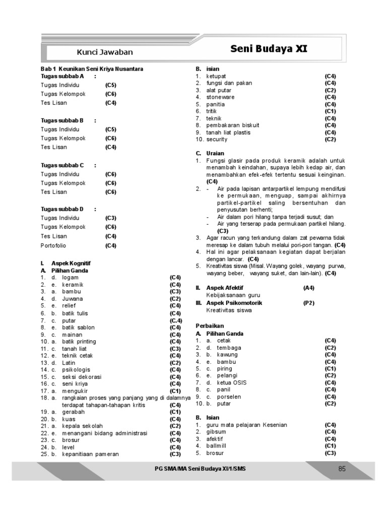 Kunci Jawaban Lks Ekcellent Sbk Kelas Xii