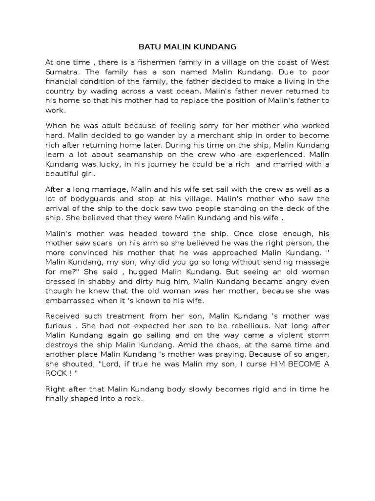 Cerpen Bergambar Cerita Malin Kundang Dalam Bahasa Inggris