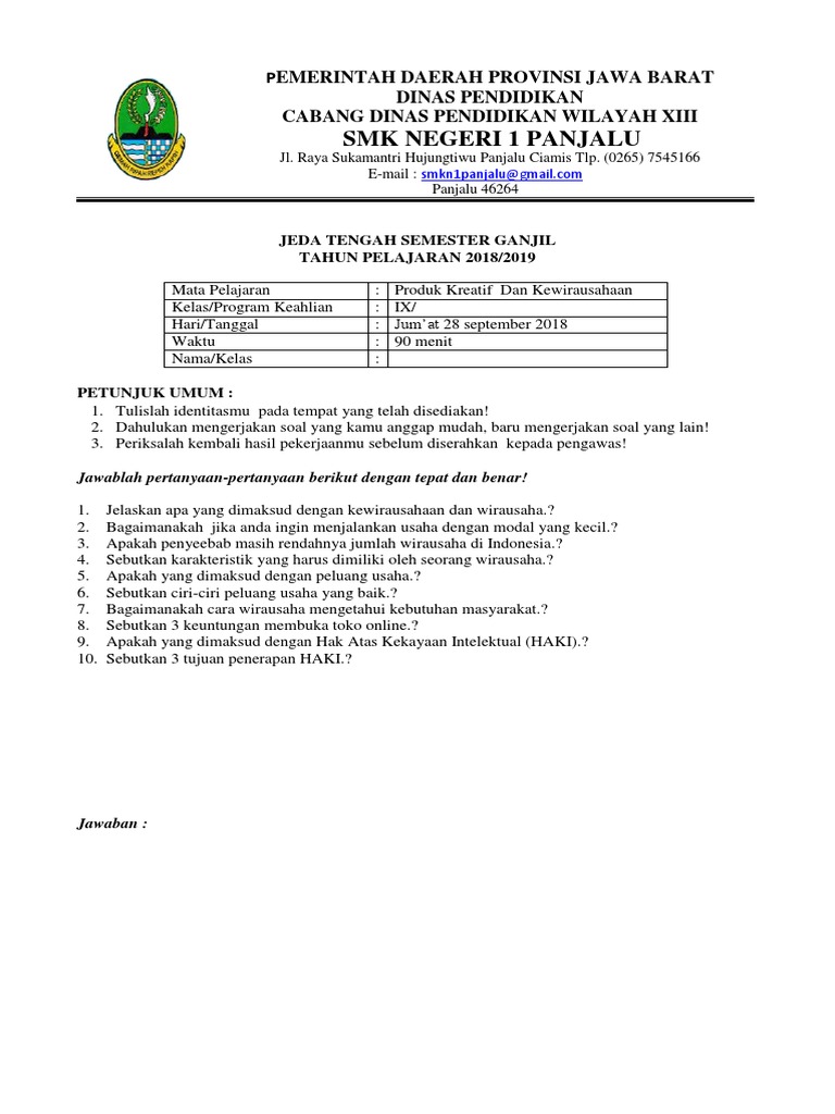 Soal Dan Pembahasan Pts Uts Produk Kreatif Dan Kewirausahaan Smk