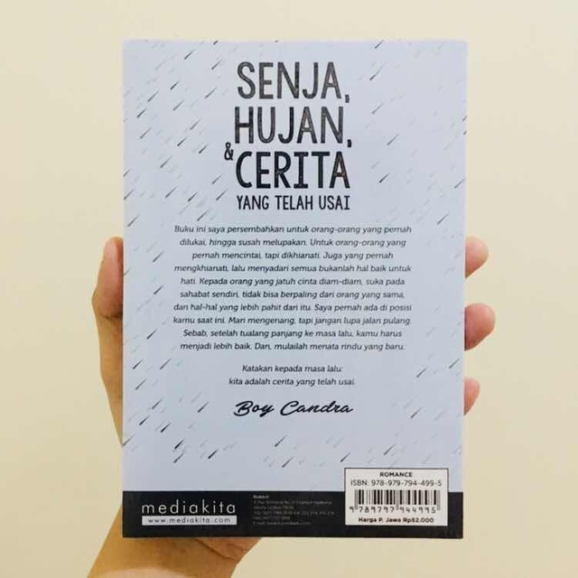 Download gratis senja hujan cerita yang telah usai pdf oleh boy candra. Buku senja hujan cerita yang telah usai adalah buku nonfiksinya yang ke dua setelah buku catatan pendek untuk cinta yang panjang 2015buku lain yang sudah terbit. Sinopsis novel senja hujan dan cerita yang telah usai merupakan novel nonfiksi yang menceritakan pengalaman kisah perjalanan asmara dari sang penulis.