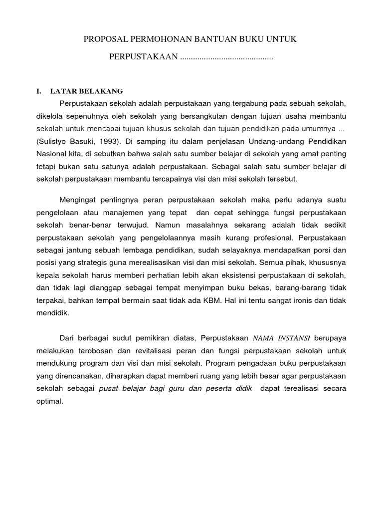 Proposal Bantuan Buku Perpustakaan Pustakabs Semua Tentang