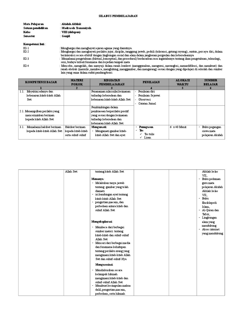 Silabus Akidah Akhlak 8 K13 Revisi 2016