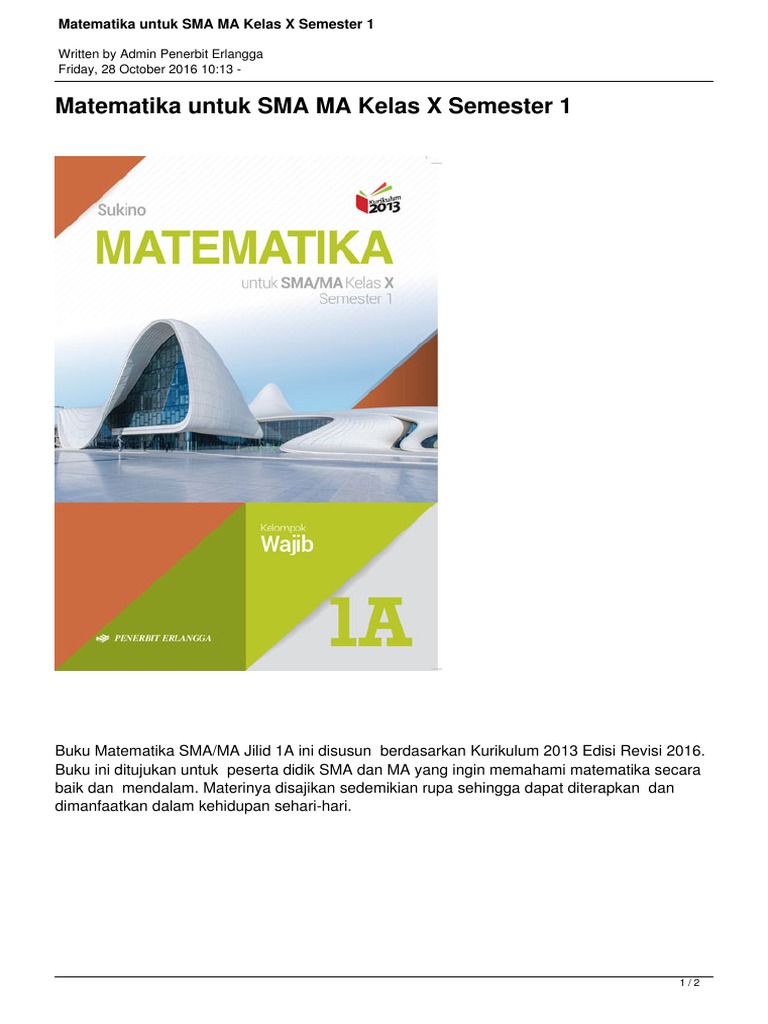 Matematika Sma Ma Kelas X Semester 1 1a Sukino Kurikulum