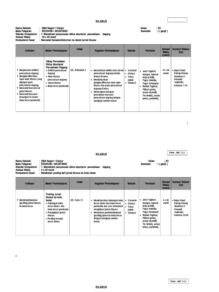 Silabus Ekonomi Kelas Xii Doc 1
