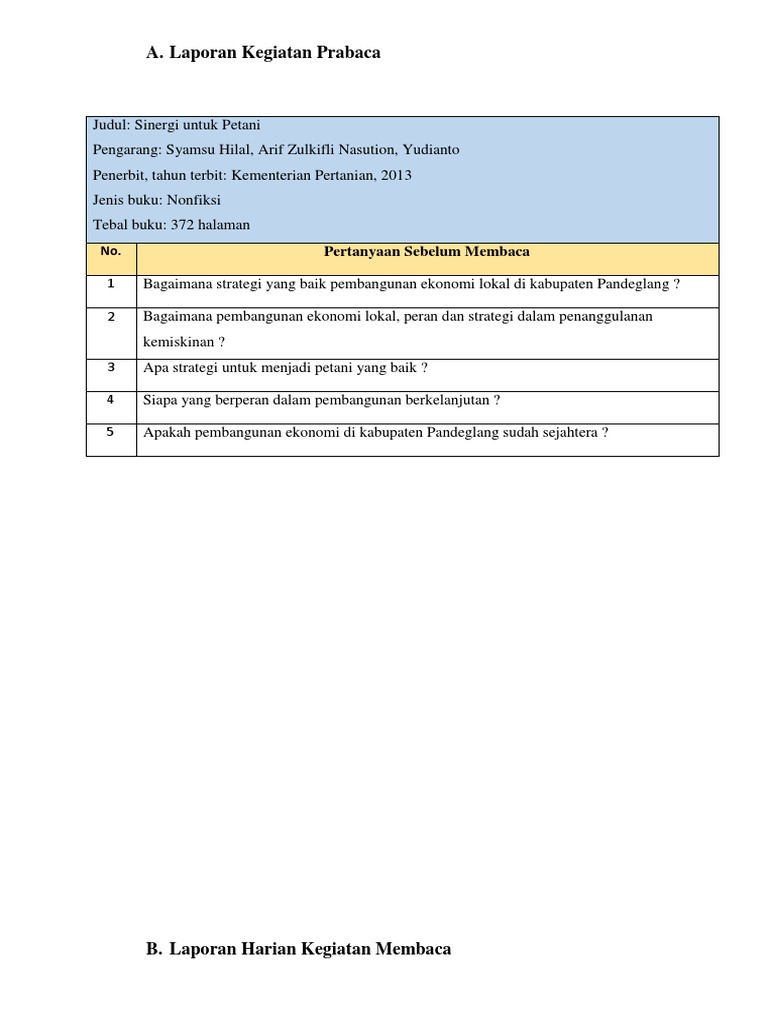 Laporan Harian Kegiatan Membaca Buku Brainly Co Id