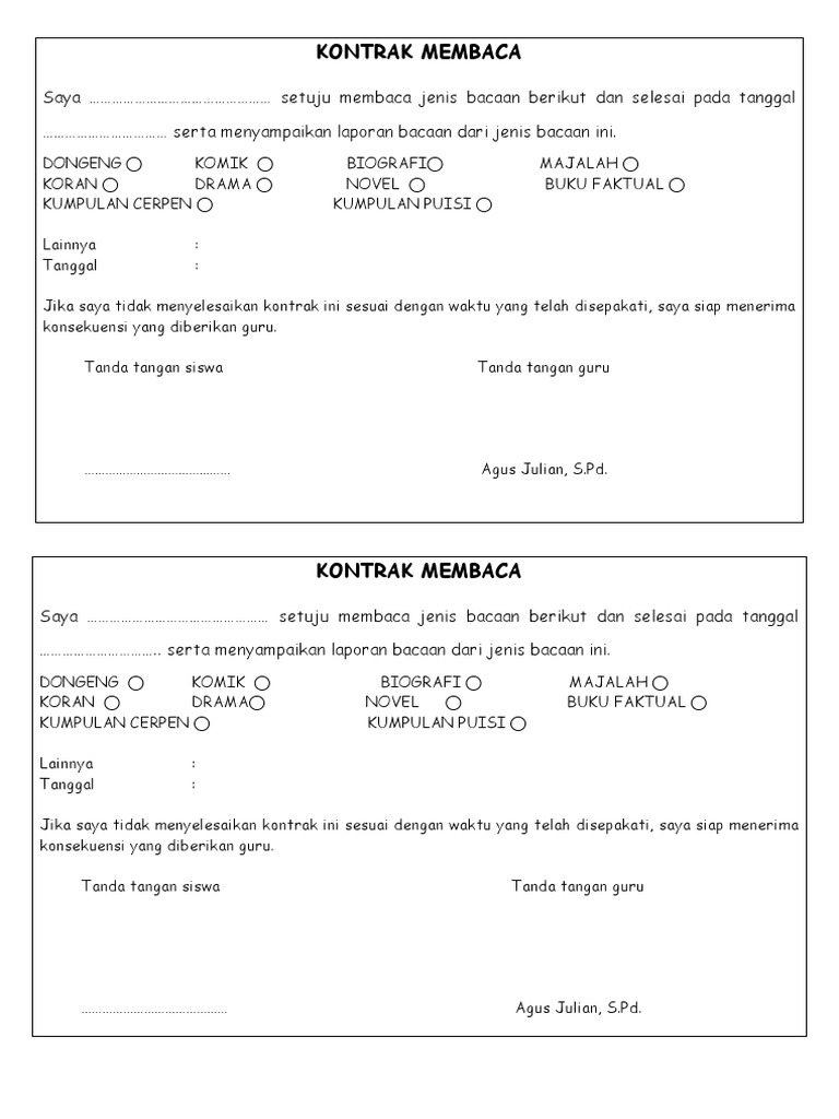 Format Kontrak Membaca Dan Laporan Kegiatan Membaca