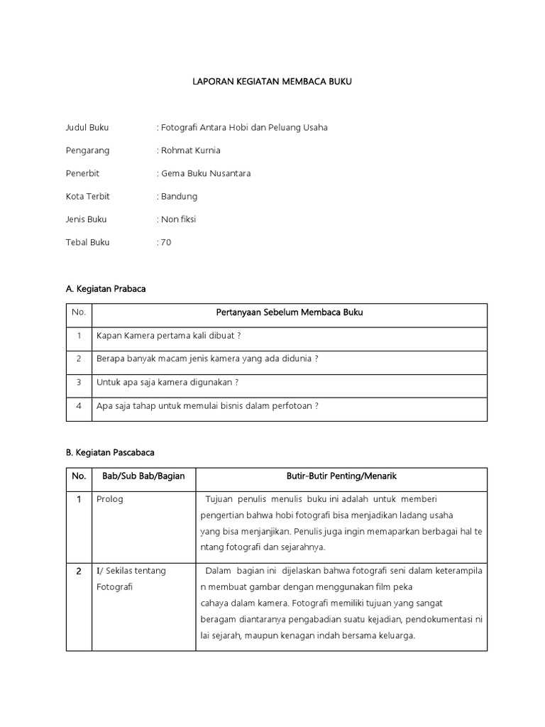 Contoh Laporan Kegiatan Membaca Buku Non Fiksi Brainly Kumpulan