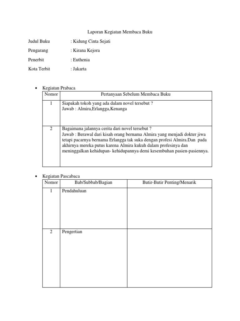 Laporan Kegiatan Membaca Buku Nonfiksi Docx Laporan Kegiatan