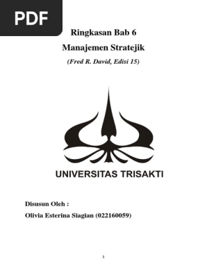 Manajemen strategik fred r david. Fred r david manajemen strategikpdf. Manajemen strategis adalah seni dan ilmu penyusunan. Manajemen strategis harus menjadi sebuah proses yang membuat manajer dankaryawan di dalam organisasi lebih familiar dengan isu isu strategis dan solusi alternatif yang masuk akal untukmenyelesaikan beragam persoalan tersebut.