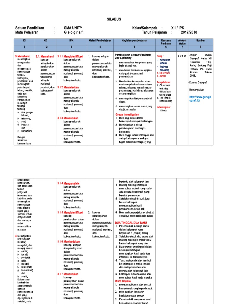 Silabus Geografi Sma Kelas X Xi Xii Kurikulum 2013 Silabus