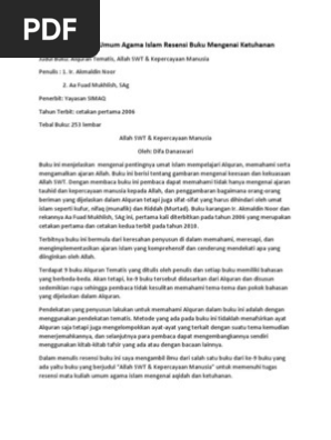 Tugas Mata Kuliah Umum Agama Islam Resensi Buku Mengenai Ketuhanan