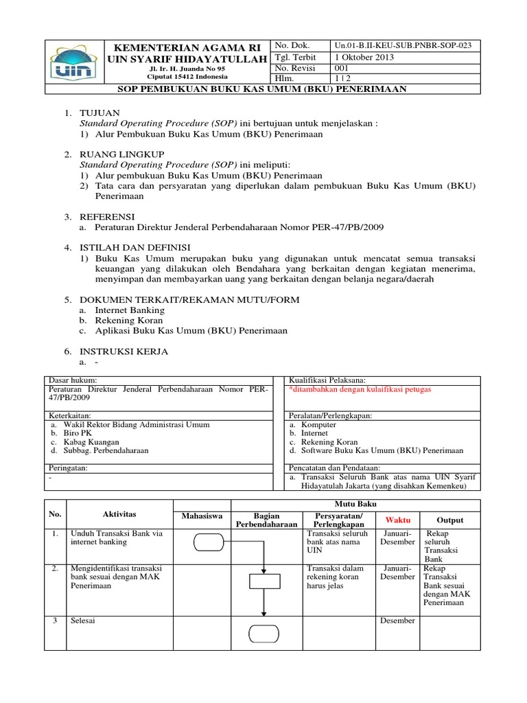 Sop Pembuatan Buku Kas Umum Bku Penerimaan Pdf