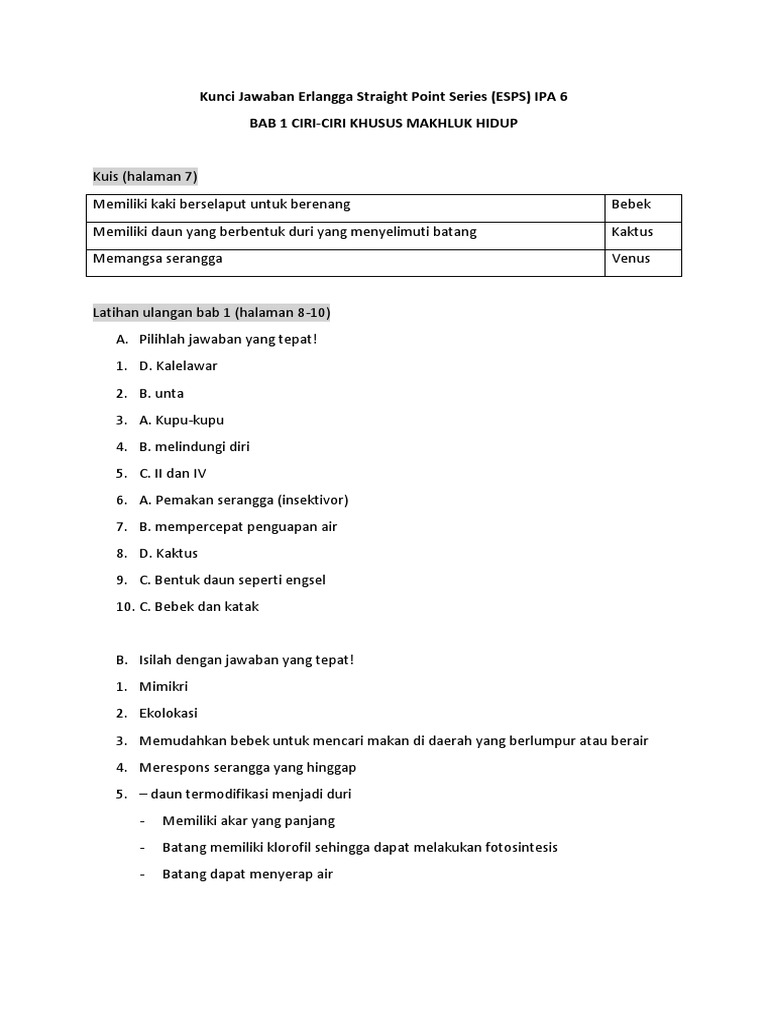 Kunci Jawaban Esps Ipa 6 Bab 1