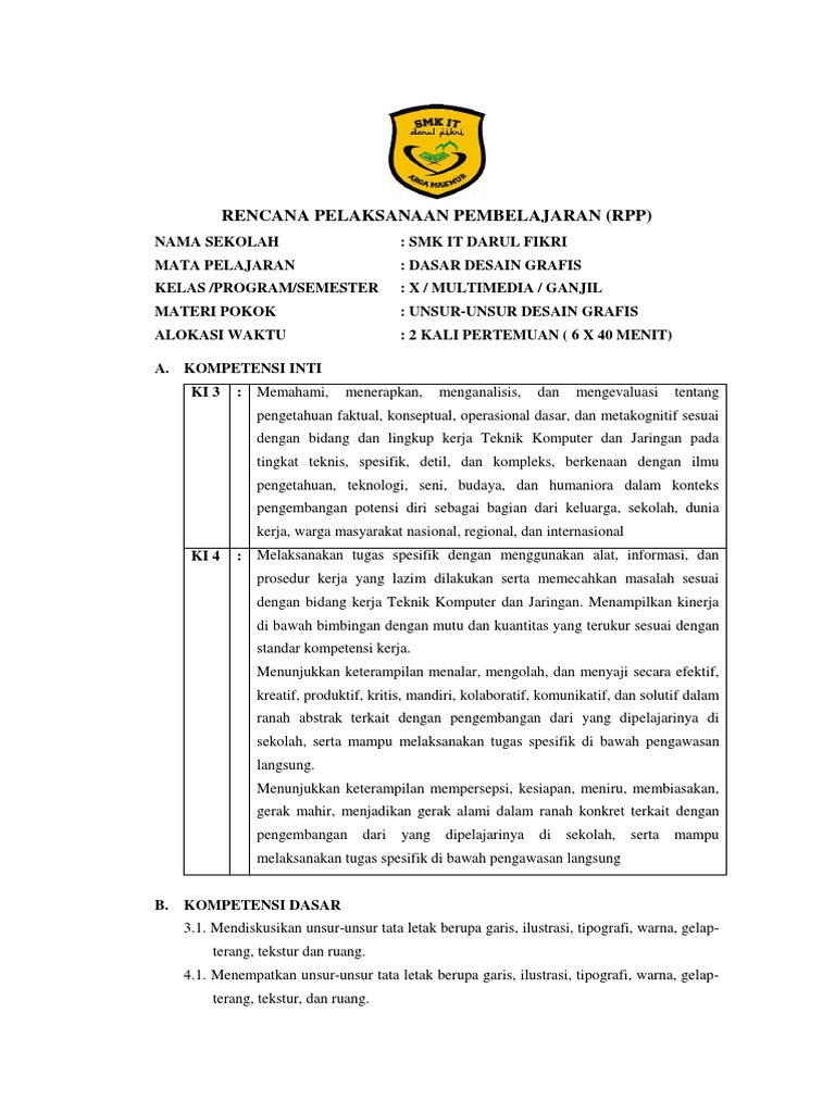 Rpp 3 1 Dasar Desain Grafis Kelas X Semester Gassal Docx Documents