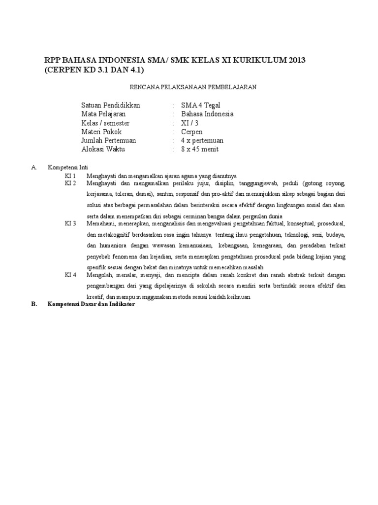 Rpp Bahasa Indonesia Kelas Xi Semester 2 Kurikulum 2013 Edisi