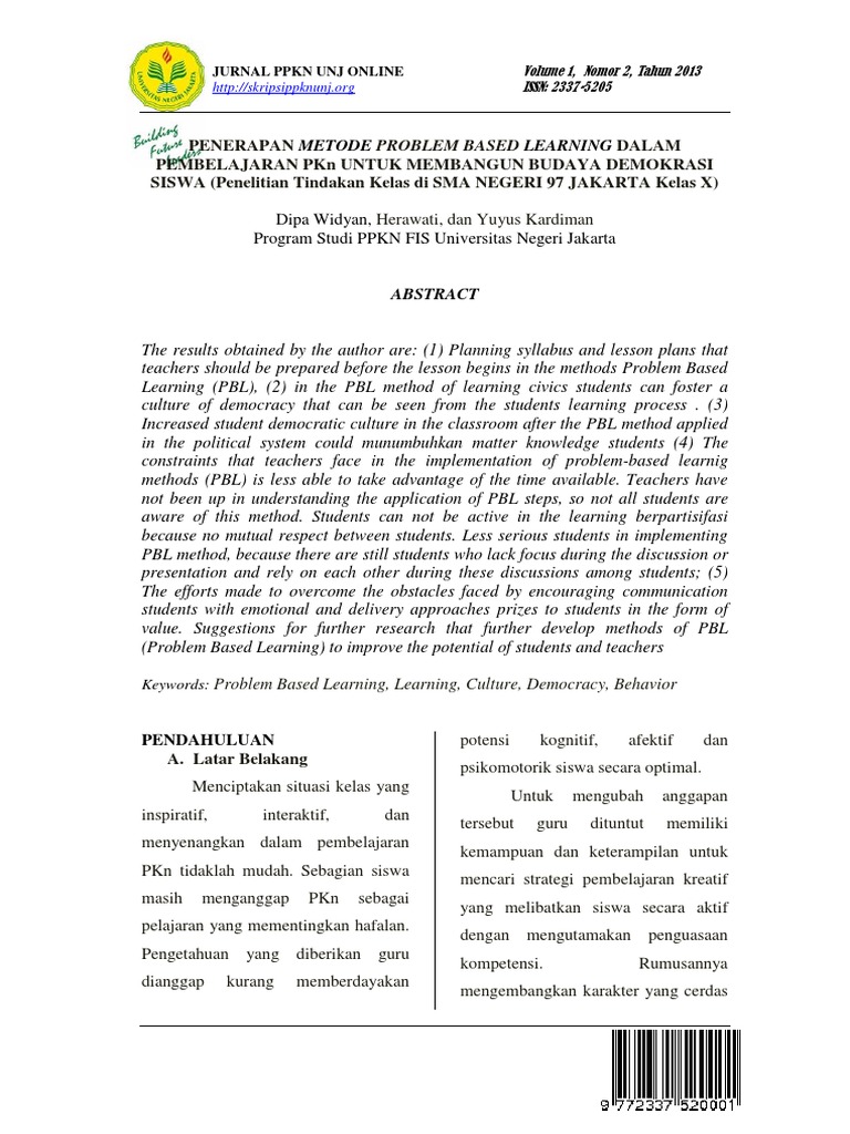 Penerapan Metode Problem Based Learning Dalam Pembelajaran Pkn