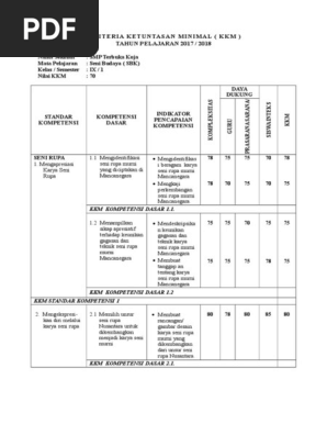 Kkm Smp Seni Budaya Kelas 9 Semester 1 Dan 2