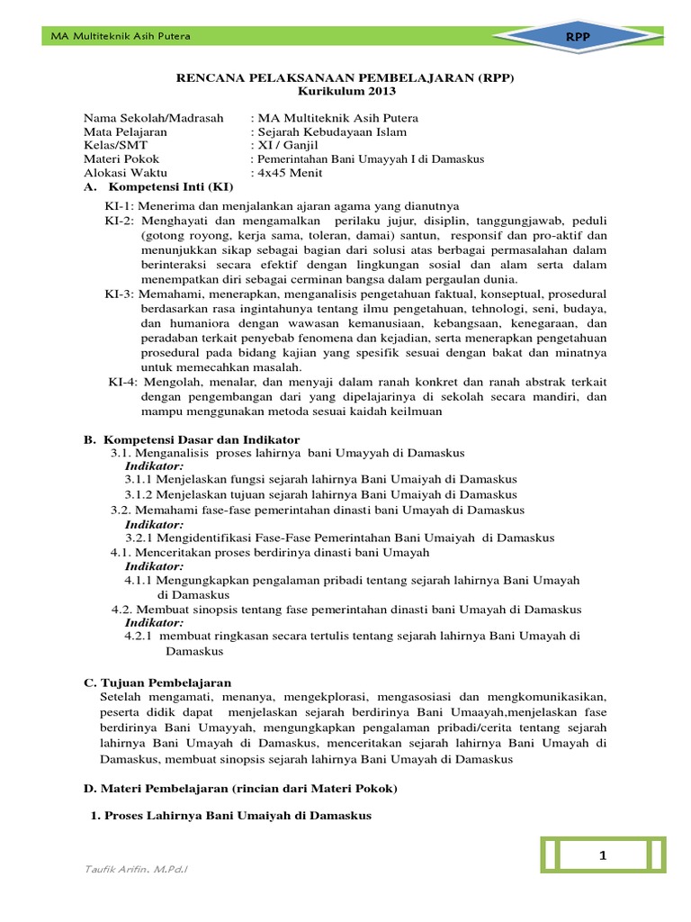 06 Rpp Sejarah Kebudayaan Islam Kelas Xi Taufik Arifin 2018 2019