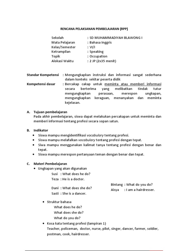 Contoh Rpp Bahasa Inggris Sd Kelas 5 Kurikulum 2013