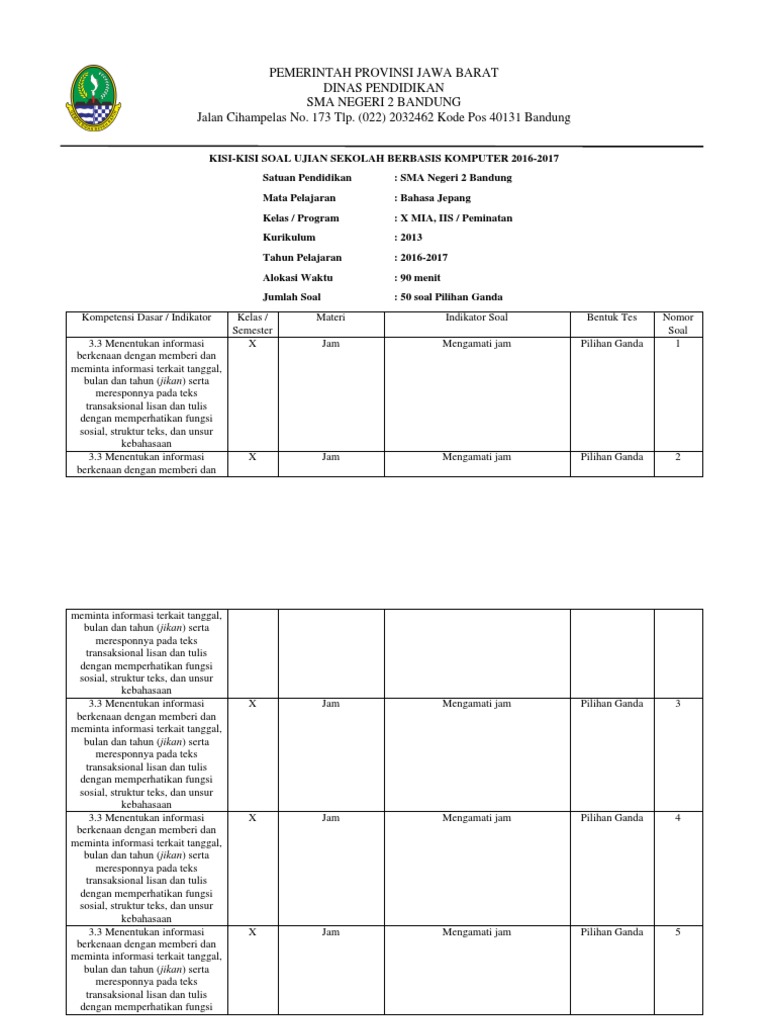 Kisi Kisi Uas Bahasa Jepang Kelas X Sman 2 Bandung Docx