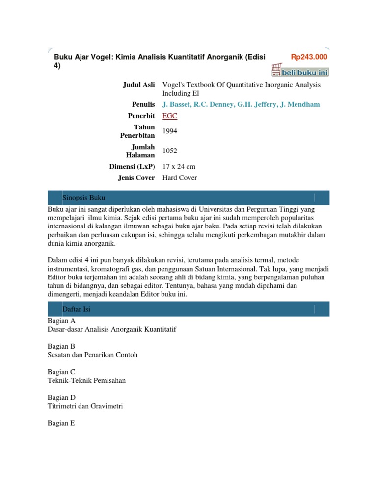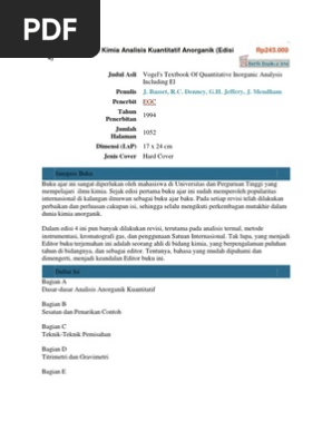 Buku Ajar Vogel Kimia Analisis Kuantitatif Anorganik Shopee