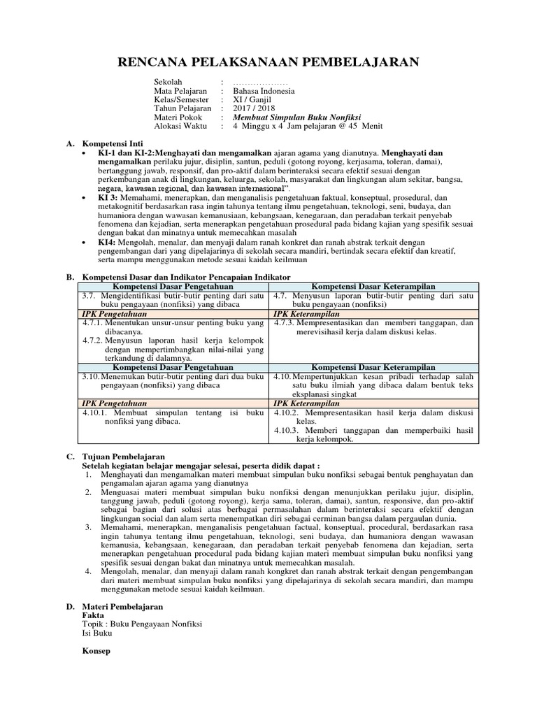 Rpp Kd 3 9 Dan 4 9 Menyusun Laporan Buku Nonfiksi Dan Fiksi Kelas