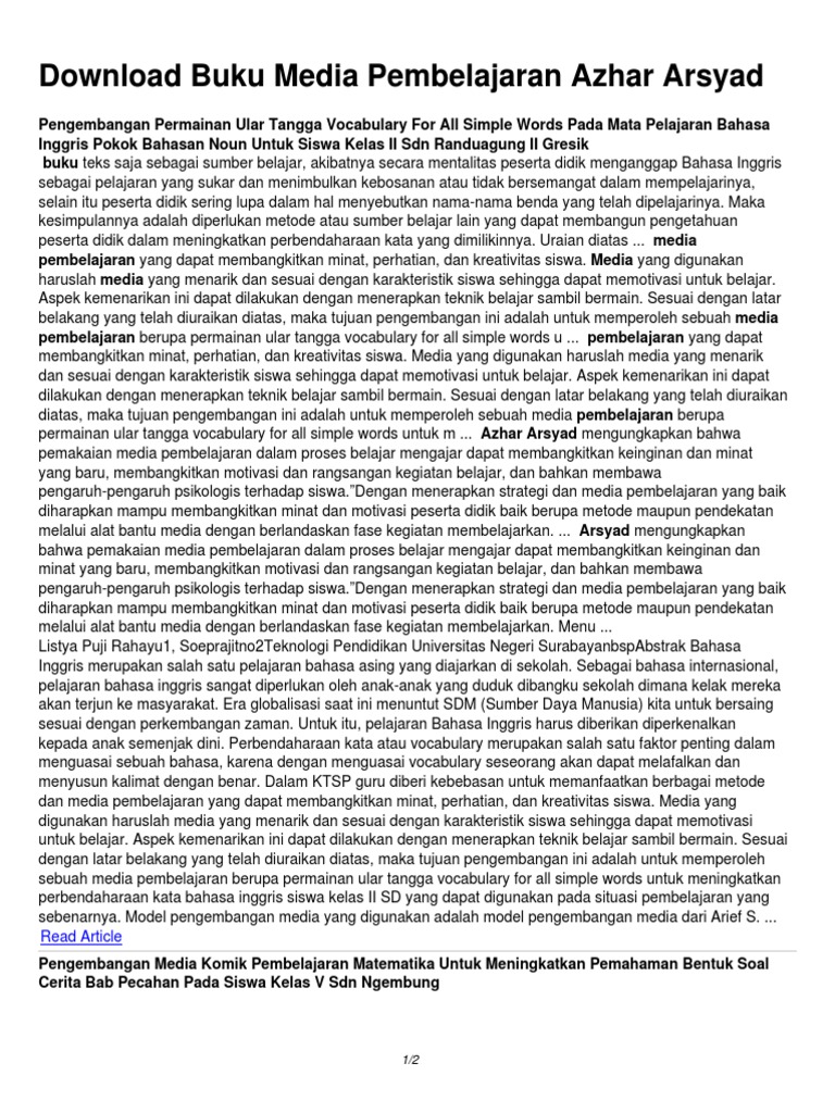 Buku Media Pembelajaran Karangan Azhar Arsyad Pdf Free Pdf Free