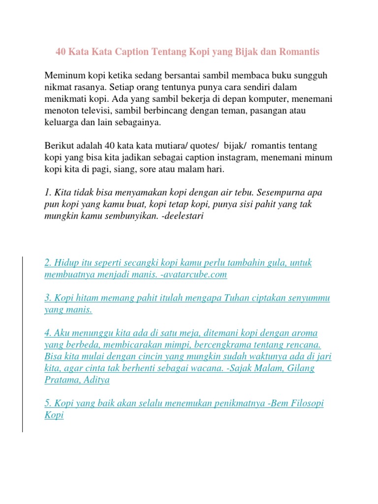 40 Kata Kata Caption Tentang Kopi Yang Bijak Dan Romantis Docx