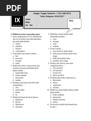 Soal Ipa Kelas 9 Smp Bab 1 Sistem Ekskresi Dan Kunci Jawaban