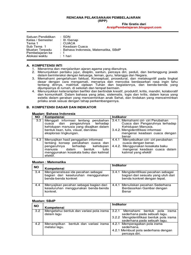 Rpp Kelas 3 Tema 5 Cuaca Sd Mi K13 Revisi 2018 Arsip Pembelajaran