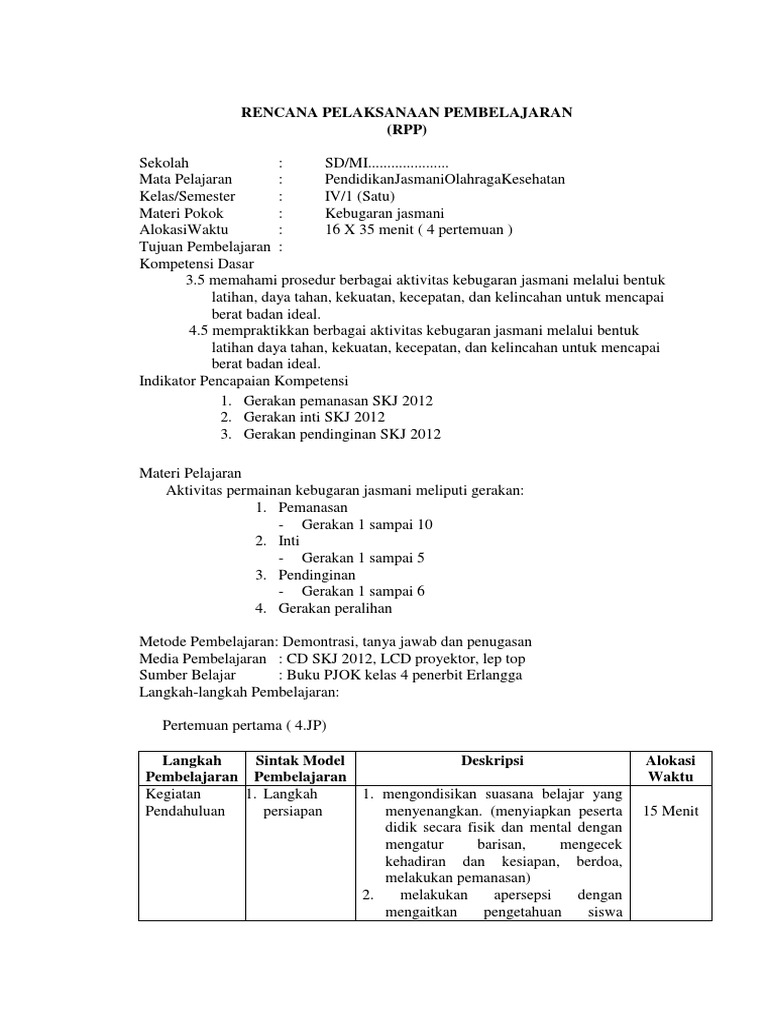 Rpp Pjok Penjas Orkes Sd Mi Kelas 1 2 3 4 5 6 K 13 Lengkap