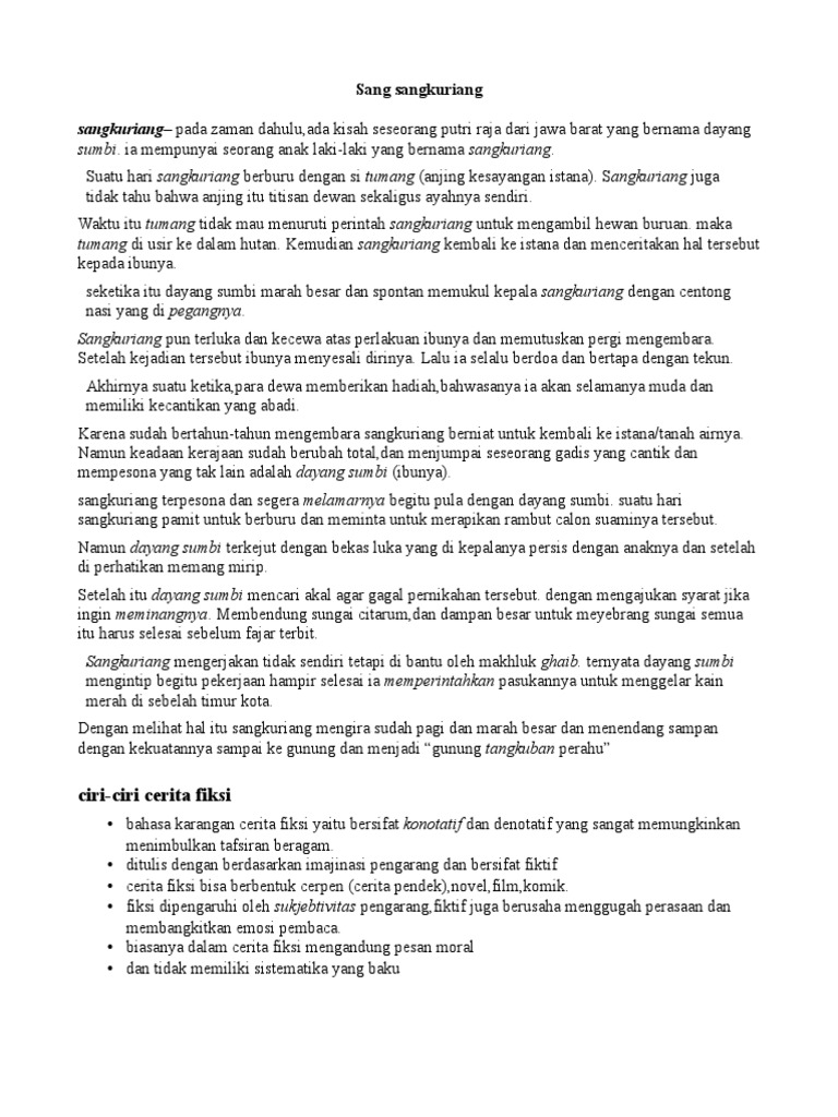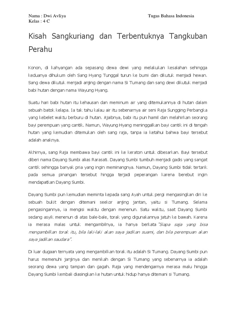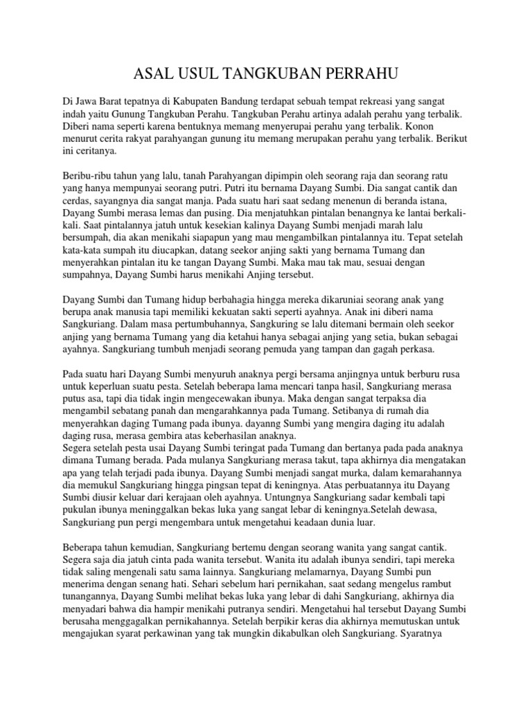 Teks Legenda Tangkuban Perahu Dalam Bahasa Inggris Pdf Document