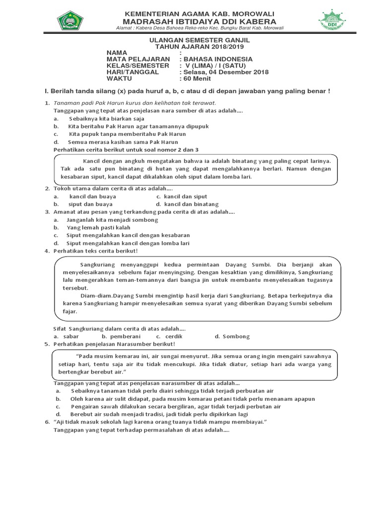 Soal Bahasa Indonesia Kelas 5 Fix