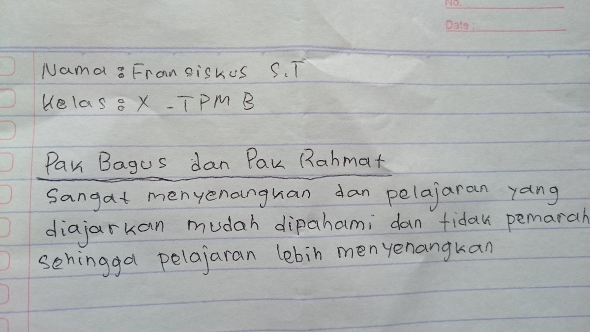Khususnya bapak x jika mahasiswanya dekat dengan beliau pasti nilai yang diberikan bagus walaupun mahasiswa tersebut jarang masuk dan pada saat ujian tidak bisa menjawab pasti ditangan mahasiswa tersebut sudah dapat b atau a. Kumpulan kesan dan pesan untuk sekolah dalam bersekolah baik itu dijenjang pendidikan tingkah sd smpmts smkmasma dan sederajat pastinya akan mengalami apa yang namanya lulus. Kesan menciptakan teknologi baru yang disebut alarm kebaikan seperti sahabat yang baik alarm kebaikan akan mengajakmu pada kebaikan.