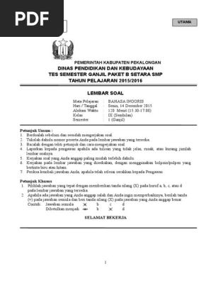 Soal Uas Semester Ganjil Paket B Setara Smp Kelas Ix Mapel