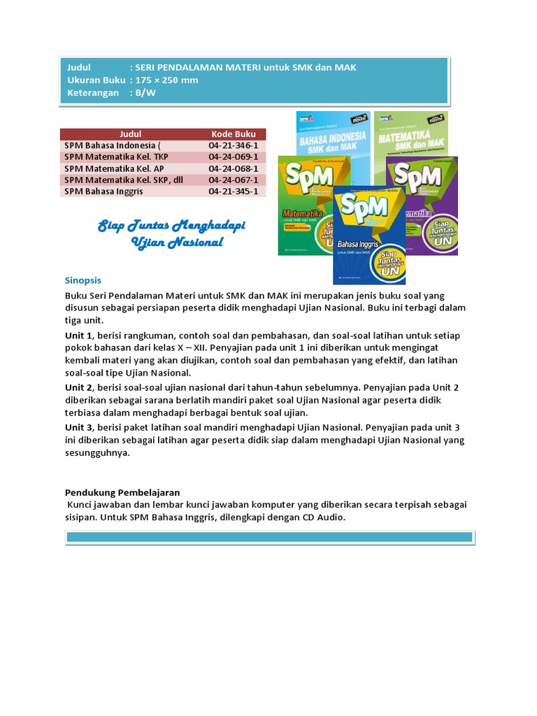 Jual Buku Spm Bahasa Indonesia Untuk Smk Siap Tuntas Menghadapi Un