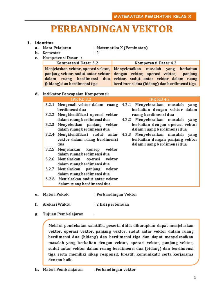 Rpp Matematika Sma Xii Peminatan Bab 2 Vektor