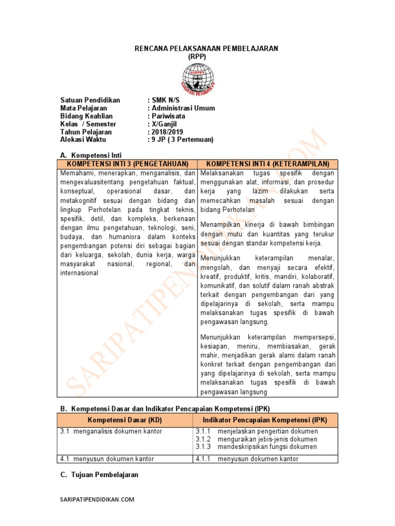 Rpp Administrasi Umum Kelas 10 Smk Kurikulum 2013 Revisi 2017