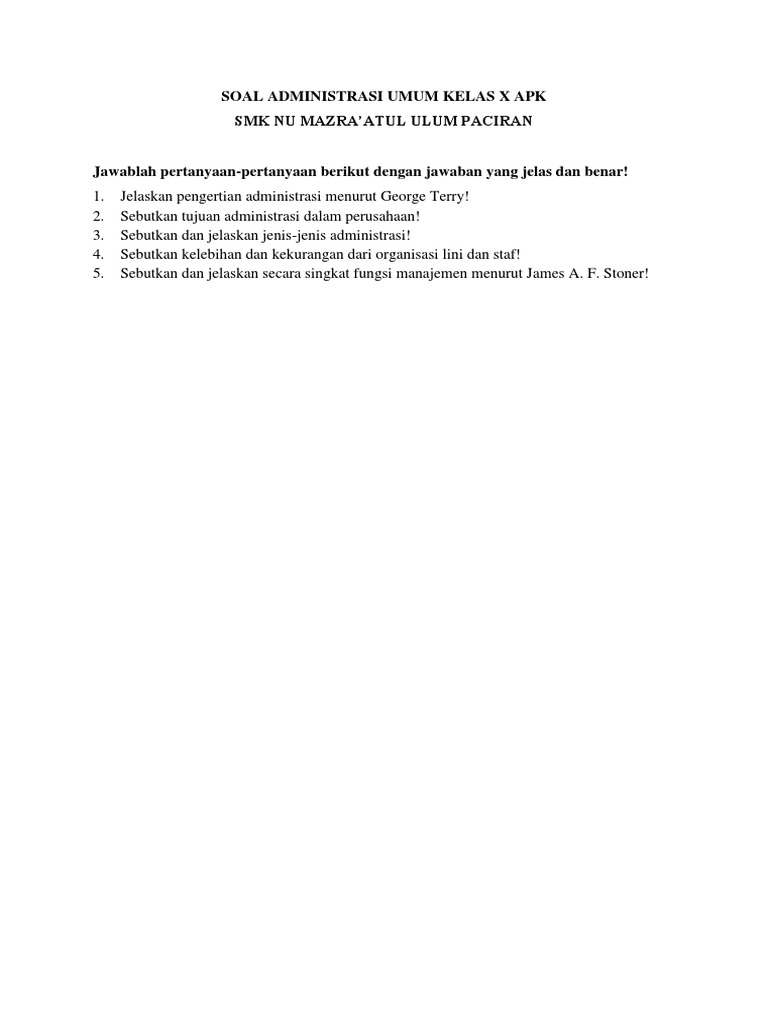 Contoh Soal Administrasi Umum Kelas 10 Beserta Jawabannya Contoh