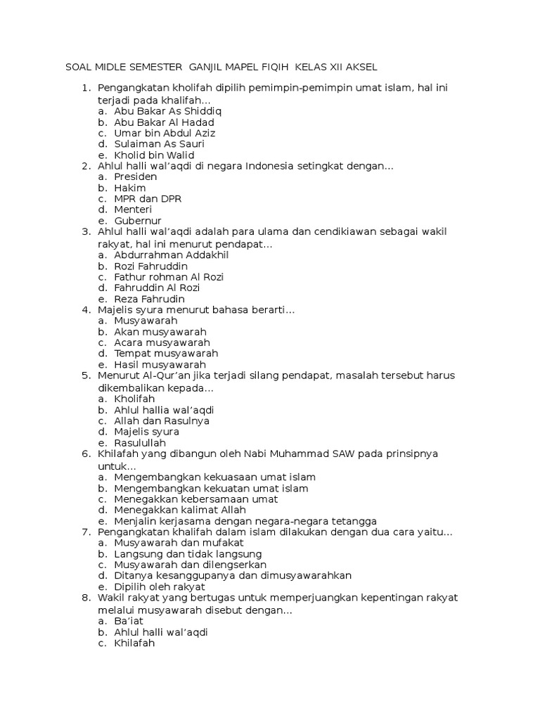 Soal Midle Semester Ganjil Mapel Fiqih Kelas Xii Aksel