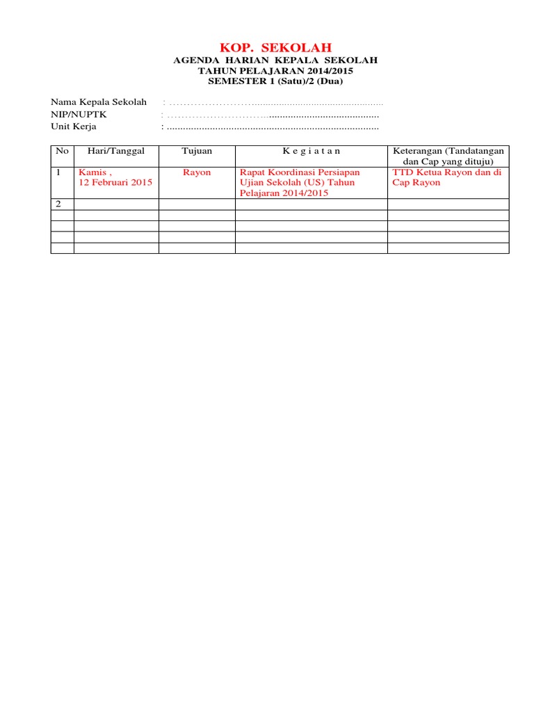 Format Agenda Kegiatan Kepala Sekolah Kurikulm 2013 File Kurikulum