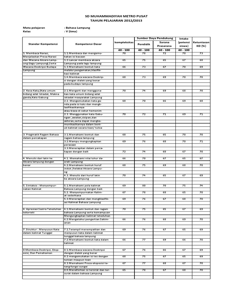 Kkm Bahasa Lampung Sd Kurikulum Belajar