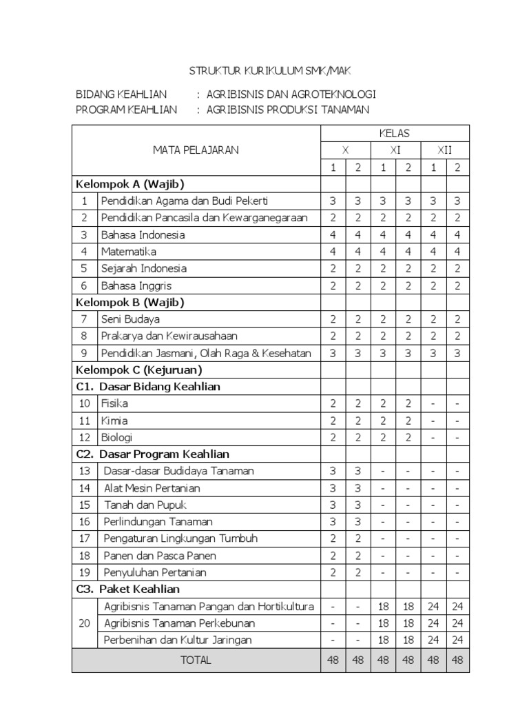 Struktur Kurikulum Ktsp Smk Agribisnis Tanaman Pangan Dan Hortikultura