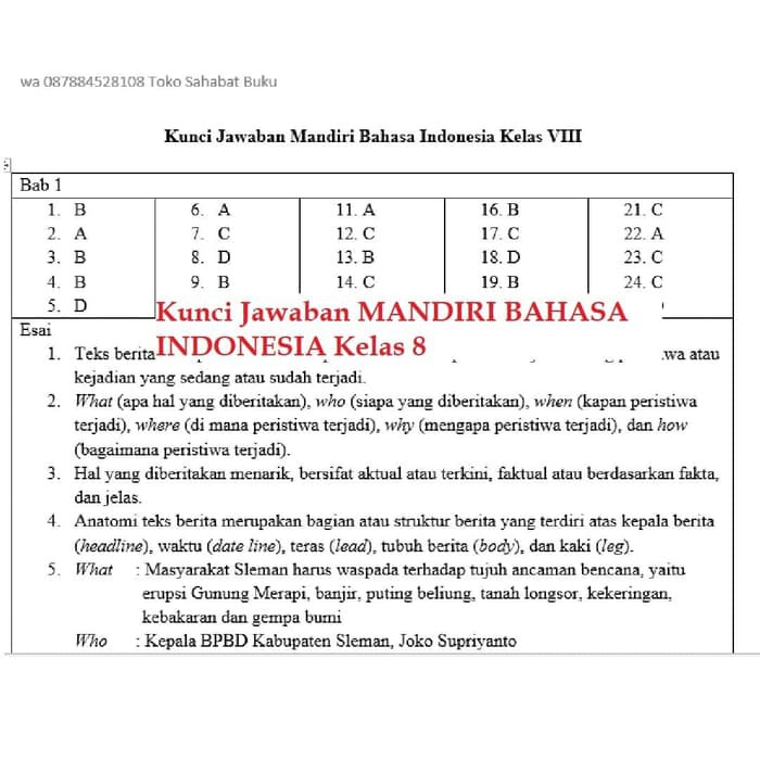 Kunci Jawaban Buku Mandiri Bahasa Indonesia Kelas 8 Kurikulum 2013