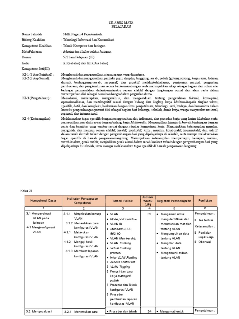 Silabus K13 2017 Xi Xii Administrasi Infrastruktur Jaringan