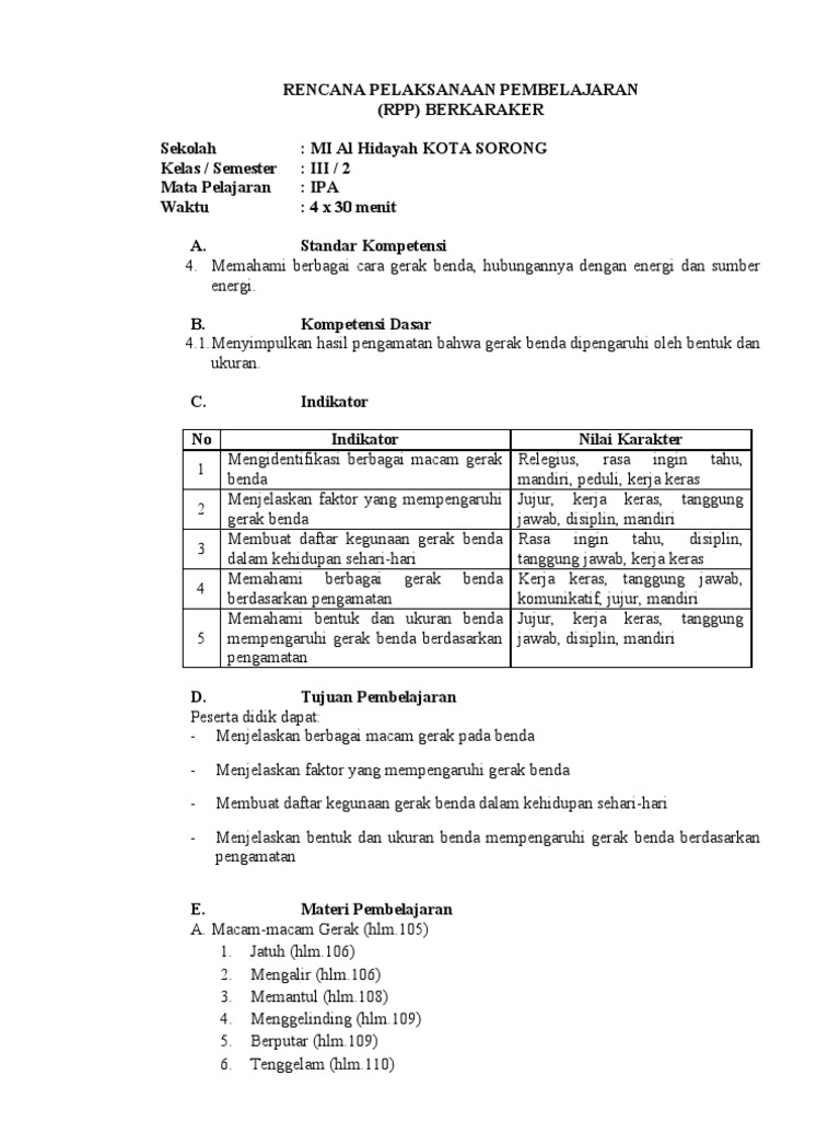 Rpp Ipa 1 Docx Rencana Pelaksanaan Pembelajaran Satuan