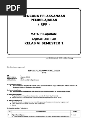 Rpp Aqidah Akhlak Kls Vi Madrasah Ibtidaiyah Mi Kurikulum 2013