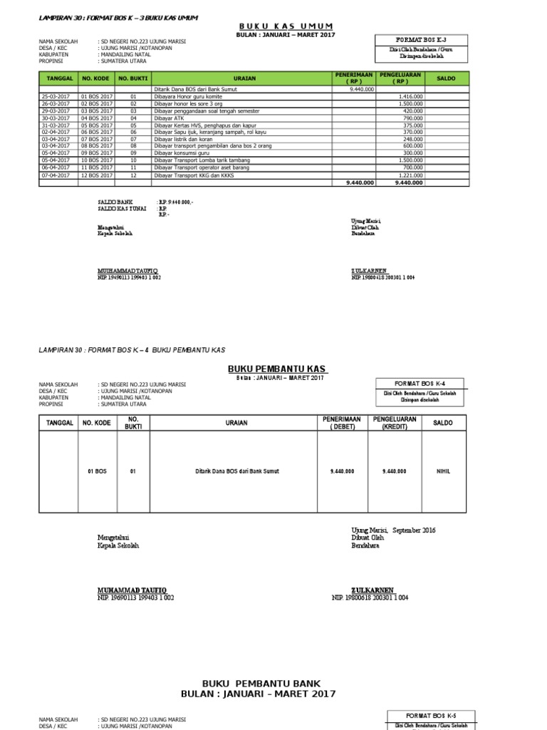 Contoh Laporan Bos Buku Kas Umum Buku Pembantu Kas Buku Bank Dan