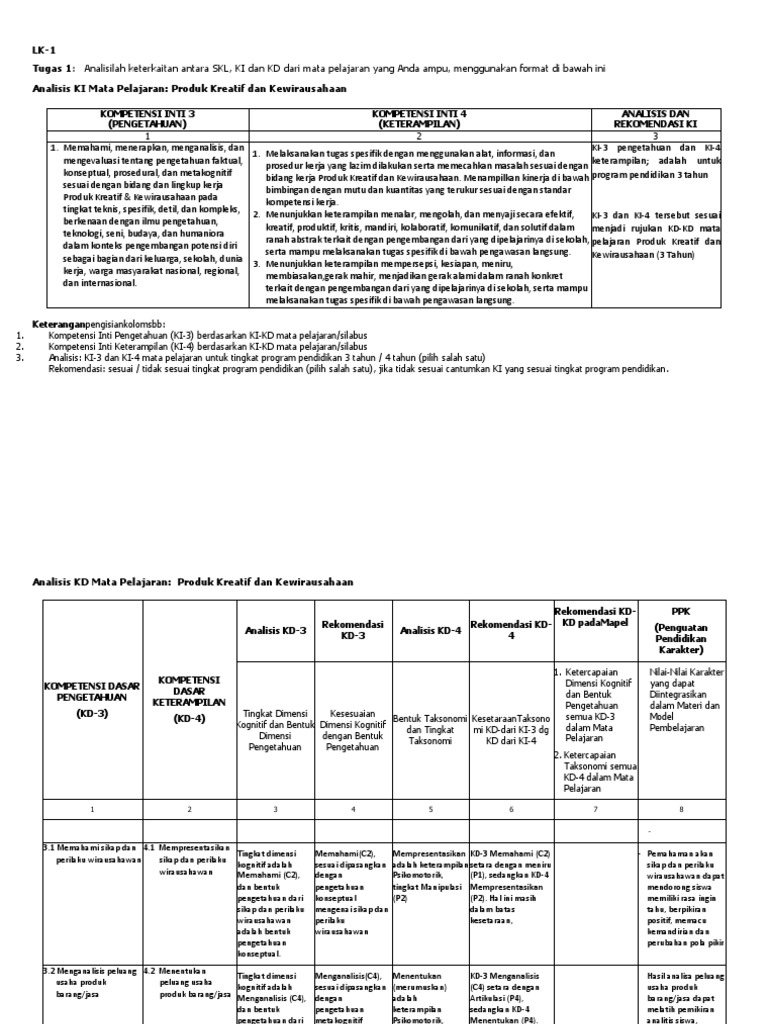 20 Ki Kd Produk Kreatif Dan Kewirausahaan Pkk Smk K13 Revisi