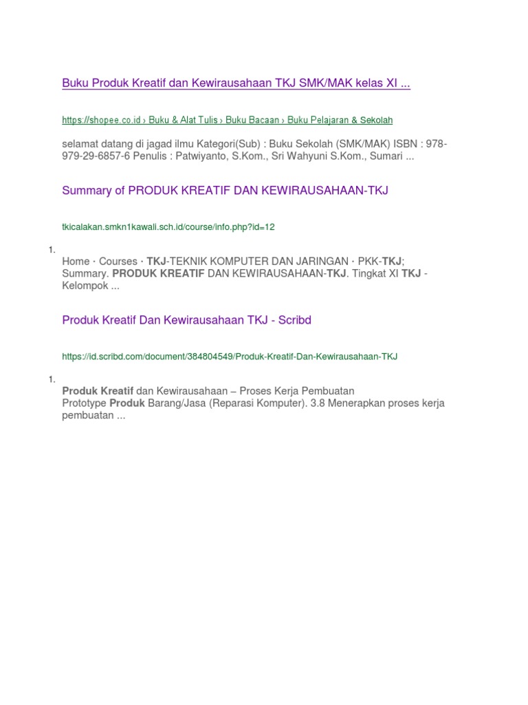 Buku Produk Kreatif Dan Kewirausahaan Tkj Smk Terbaru Di Lapak
